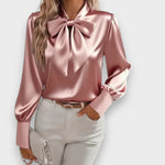 Albeni | 2025 Kadın Fiyonklu Saten Bluz – Uzun Kollu, Şık ve Zarif