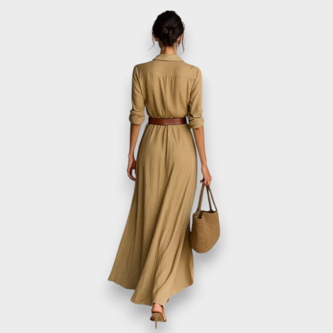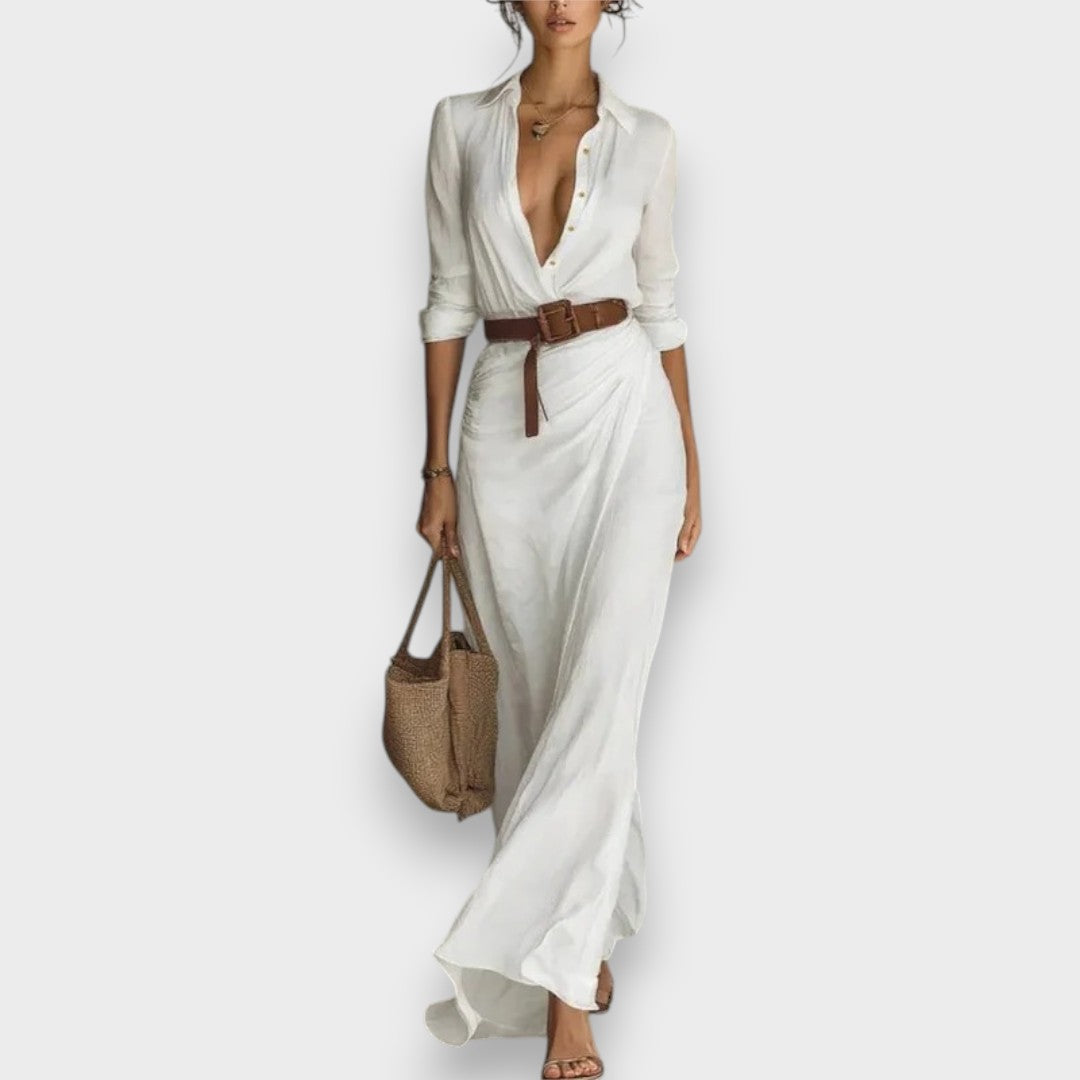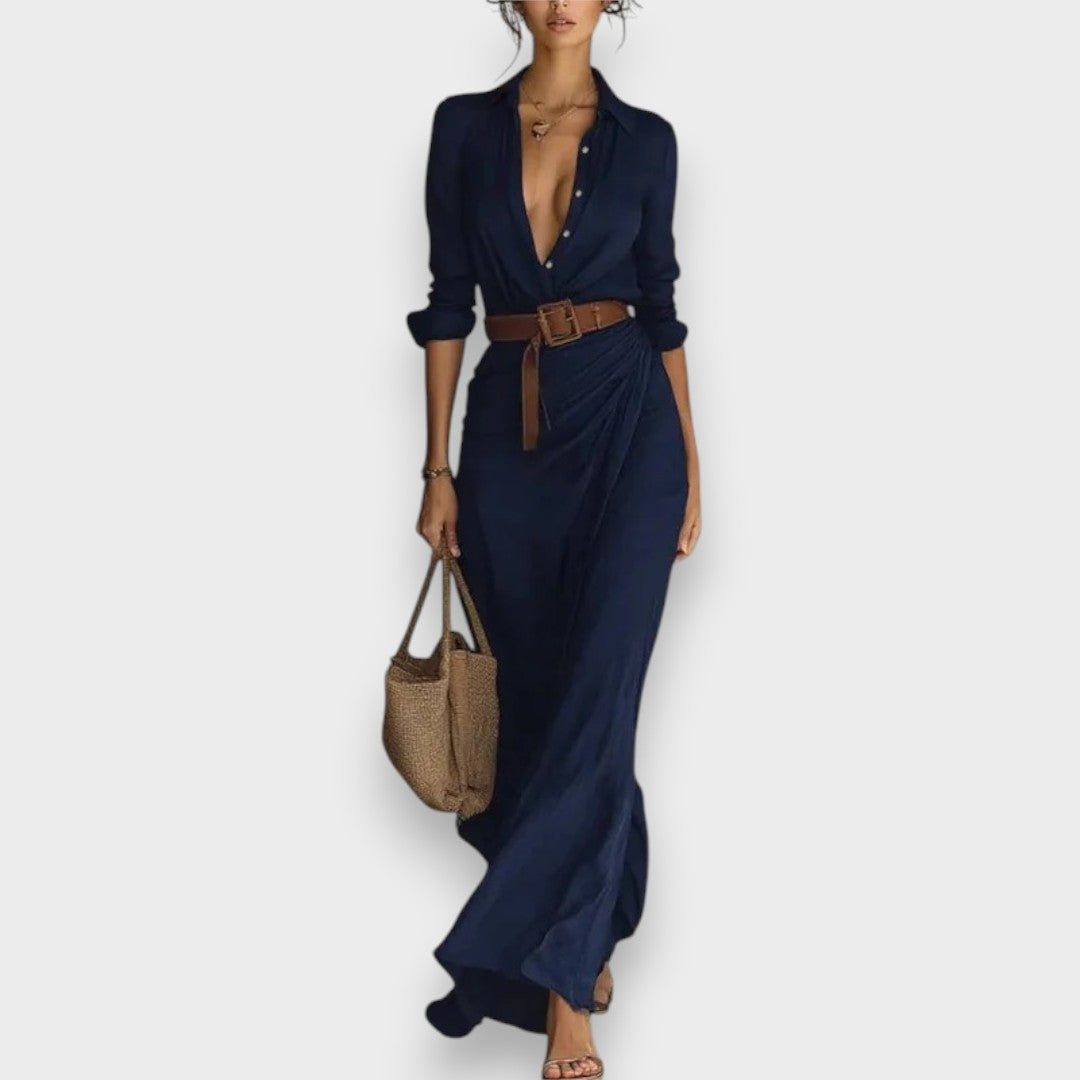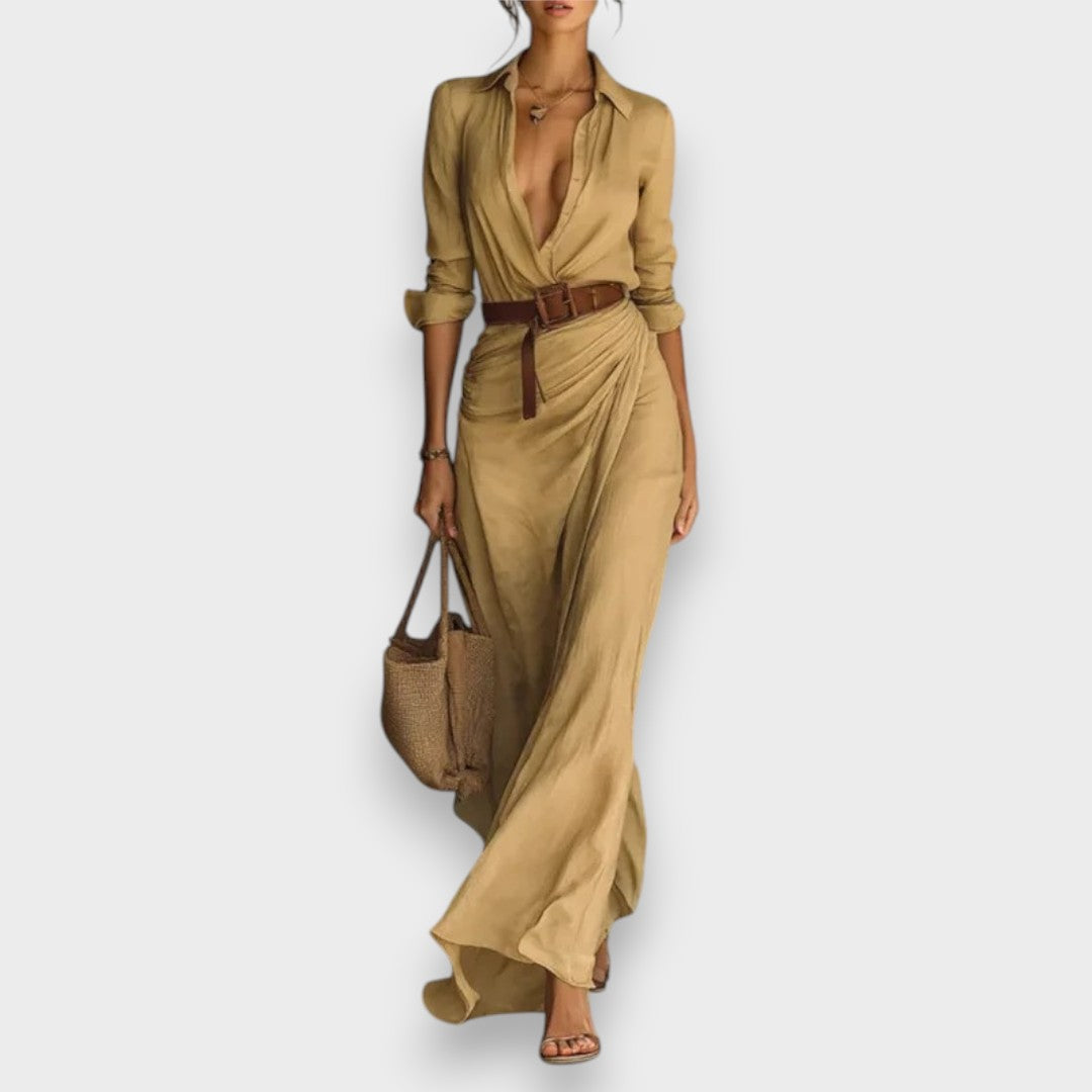 Ceyda | Yaka Detaylı Kruvaze Maxi Elbise