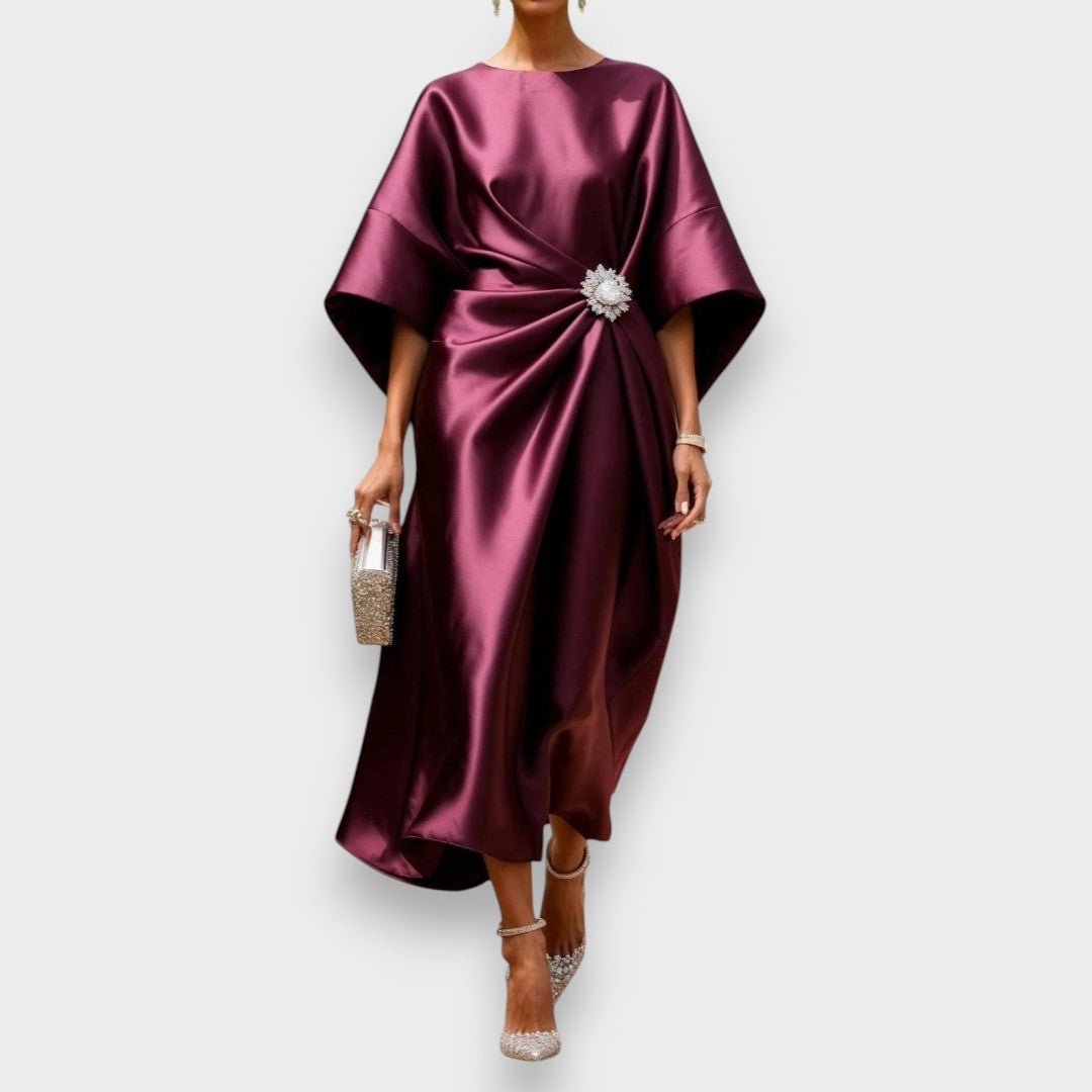 Hatice | Lüks Işıltılı Saten Uzun Elbise